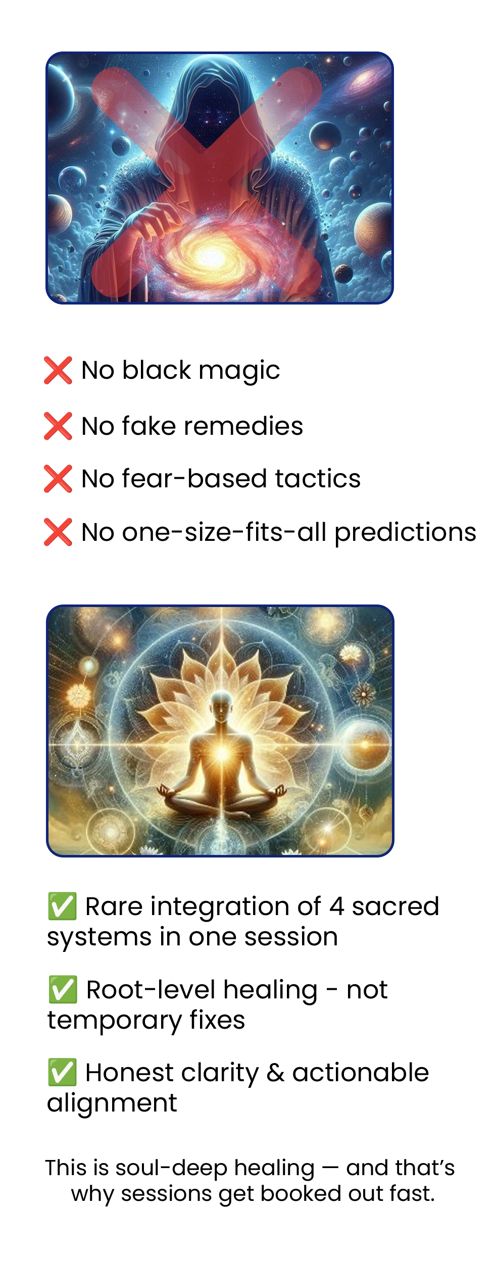 No. This combines 4 sacred sciences for root-level healing beyond predictions or talk therapy.